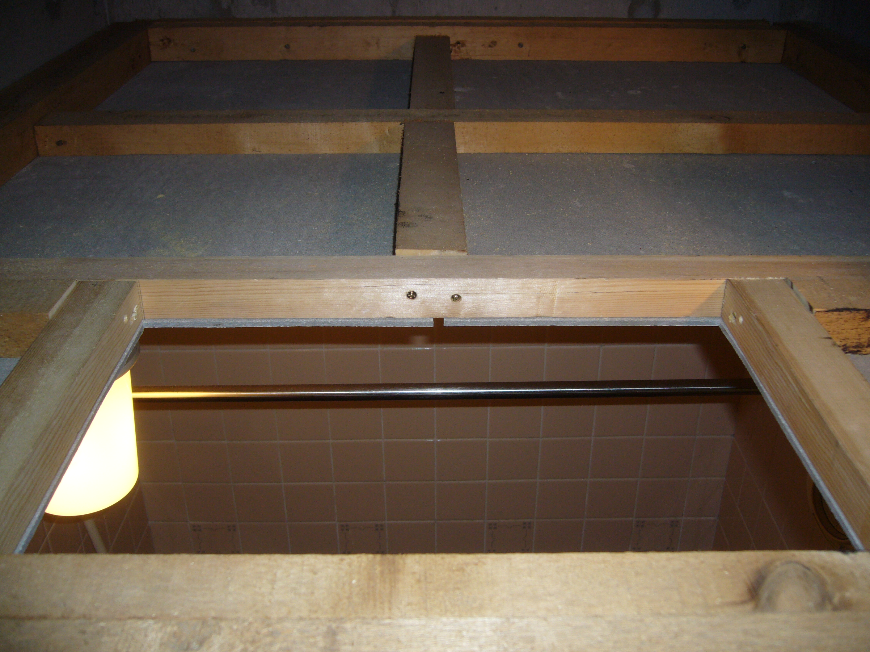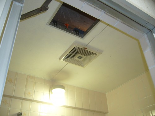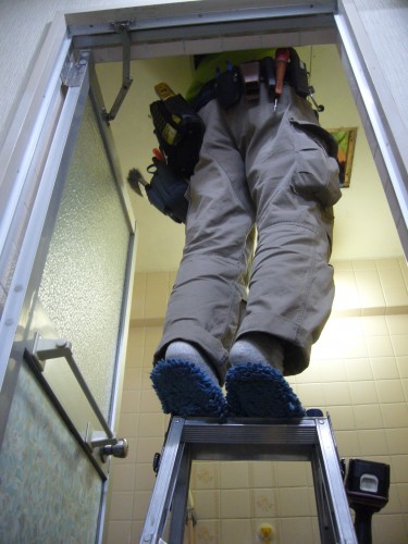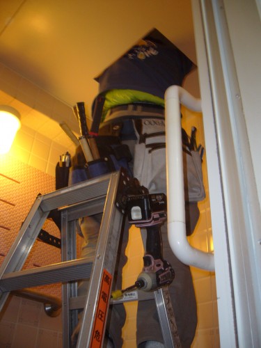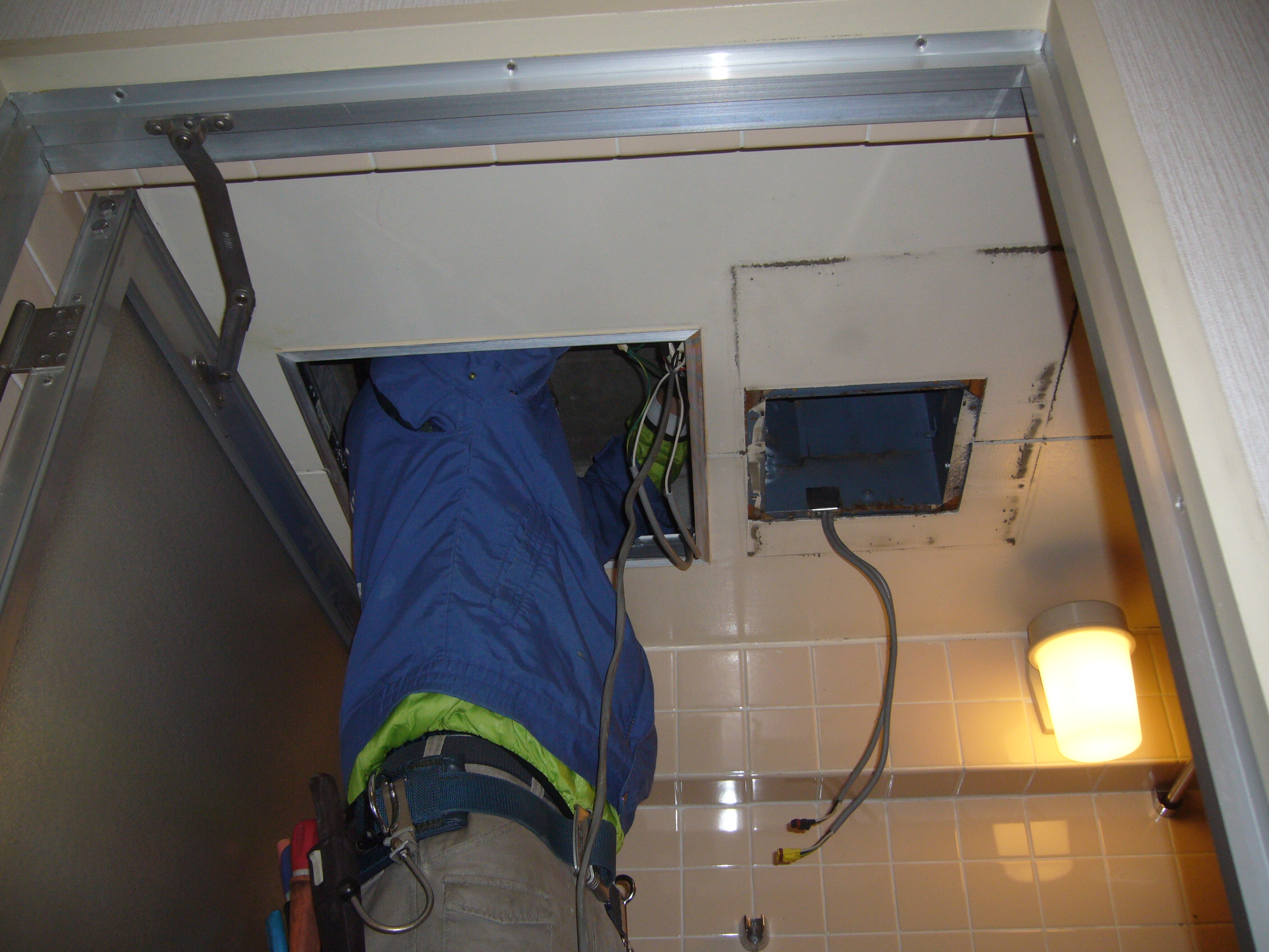 無事に配線も終わり、洗面所の天井裏で結線です。