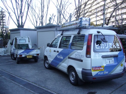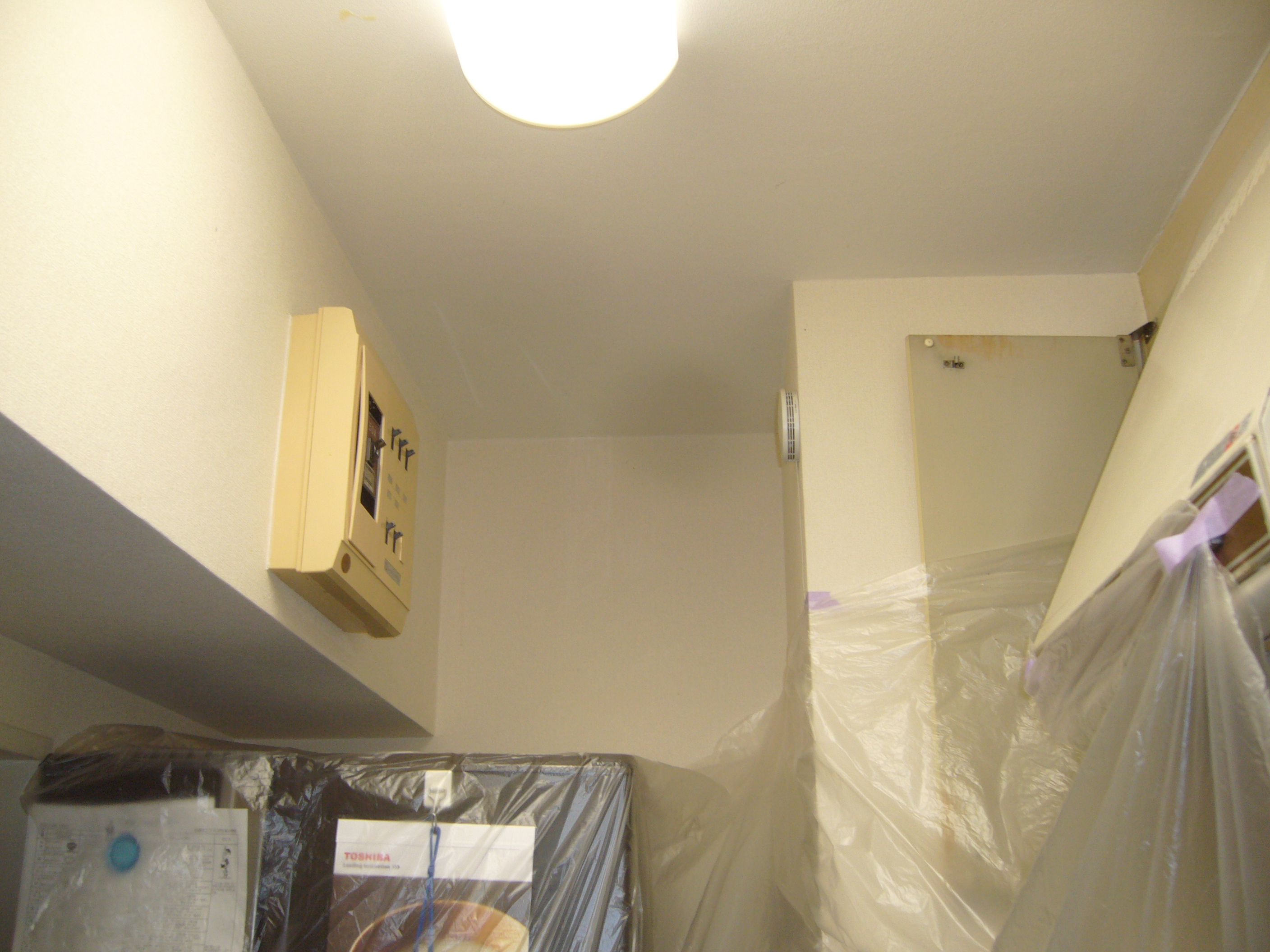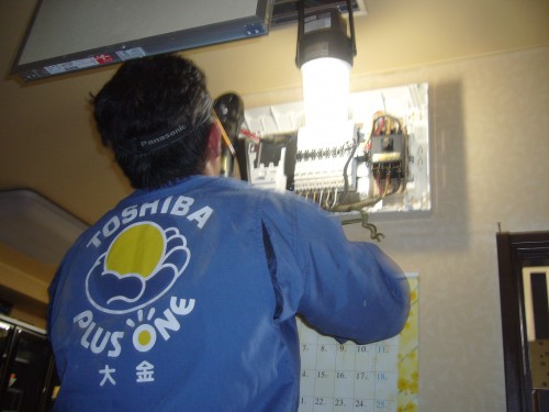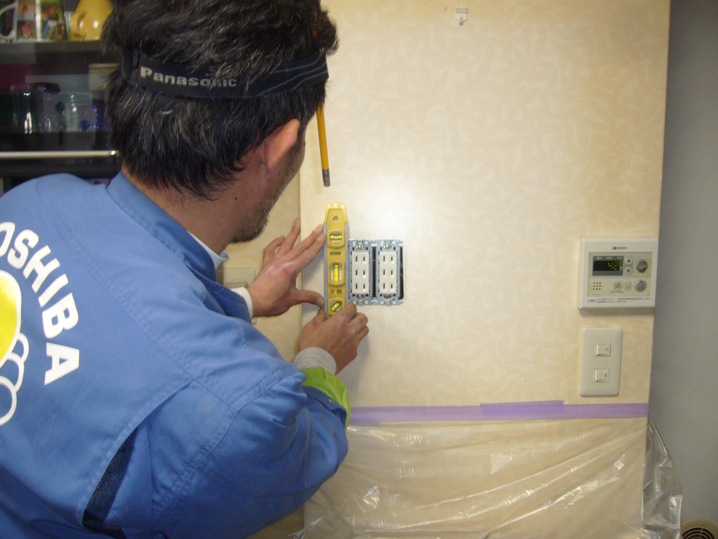 御得意様宅を汚さない様に、ビニール養生は、ヒカリ電機では、毎々必須です。