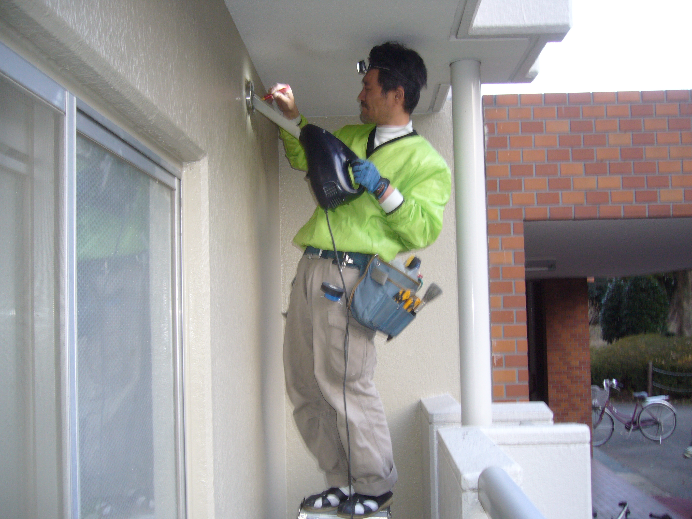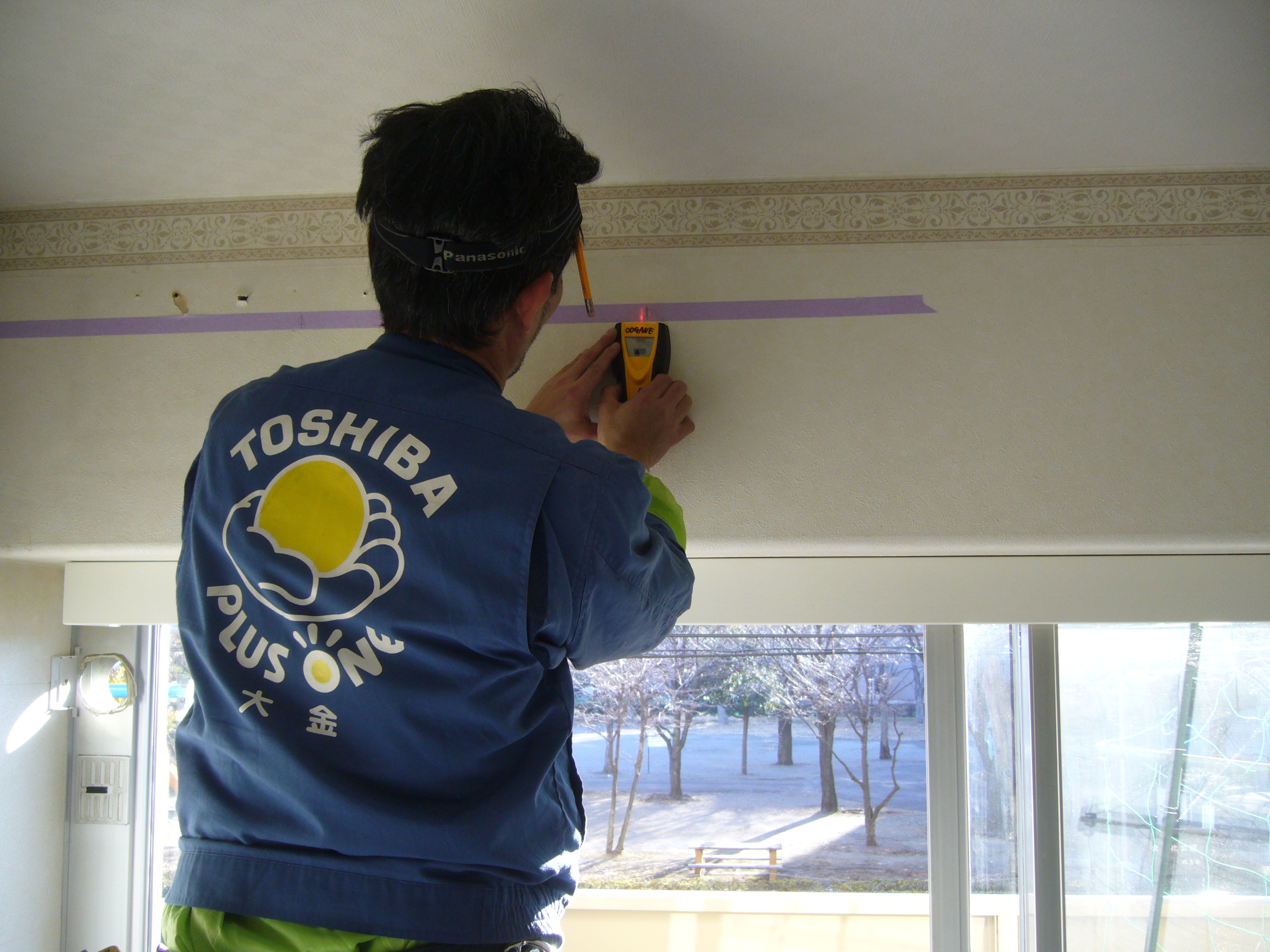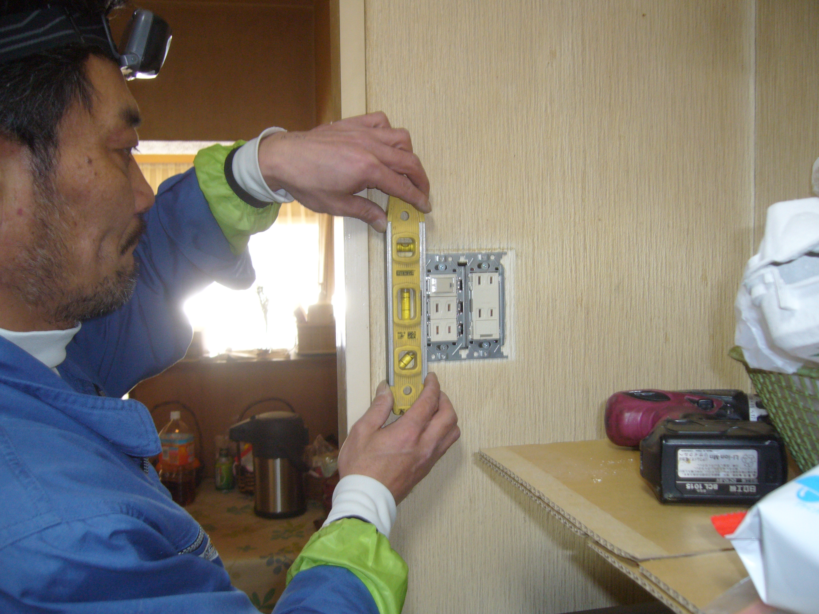 御得意様宅を汚さない様に、ビニール養生は、ヒカリ電機では、毎々必須です。